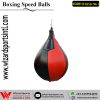 Speed Ball constructed of long lasting split leather with white trimmings. Top end fitted with improved strengthened rotating holder. Changeable latex shell bladder. Laced closing, latex bladder with butler valve.